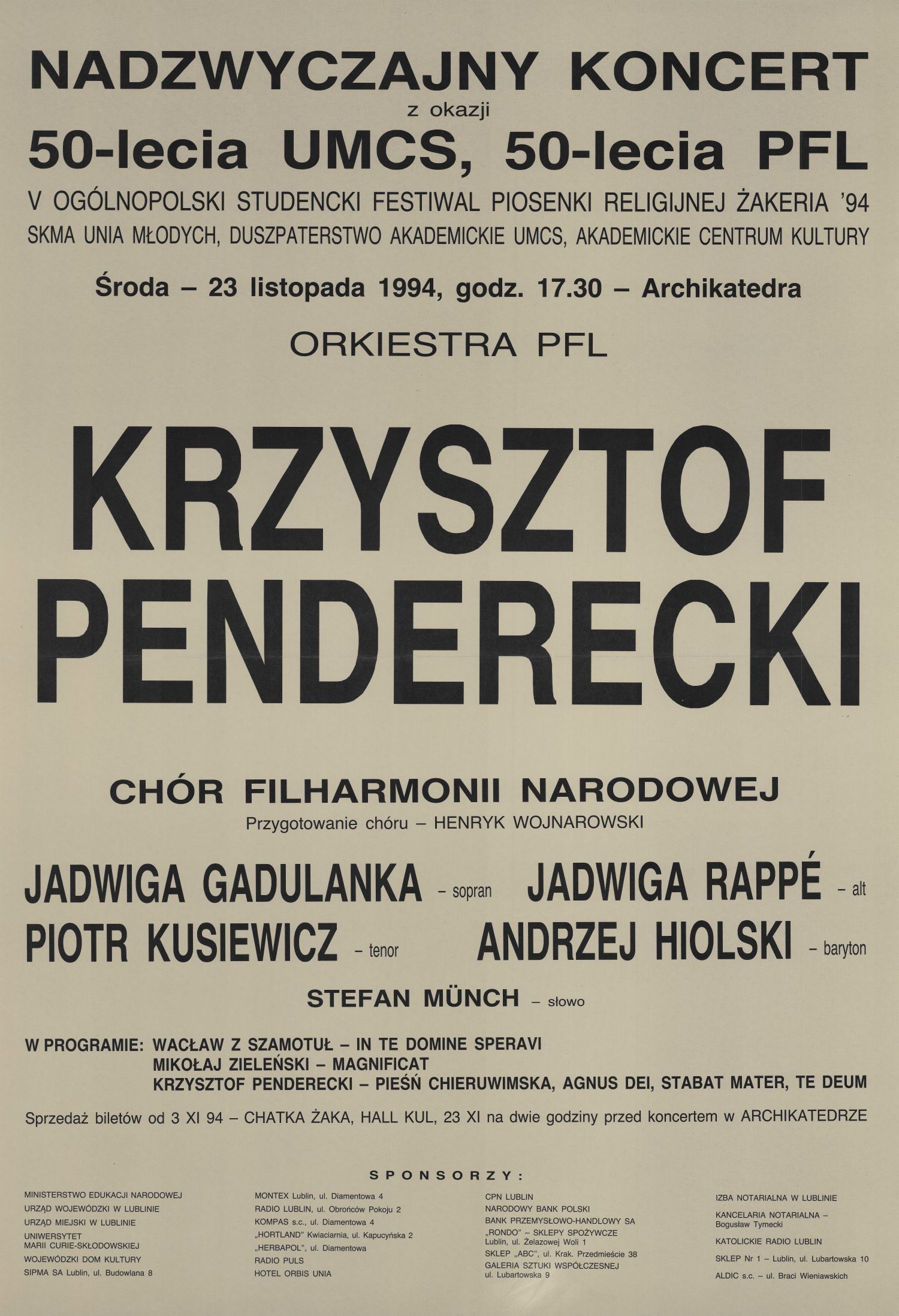 Od początku istnienia Filharmonii do dnia dzisiejszego na jej estradzie wystąpiło wielu znakomitych dyrygentów: Karol Teusch, Jerzy Katlewicz, Henryk Czyż, Jan Krenz, Wojciech Michniewski, Jerzy Maksymiuk, Antoni Wit, Krzysztof Penderecki, Marek Pijarowski, Agnieszka Duczmal, Jerzy Swoboda oraz soliści: Światosław Richter, Lidia Grychtołówna, Regina Smendzianka, Kevin Kenner, Dina Yoffe, Eugen Indjic, Rafał Blechacz, Paweł Wakarecy, Tatiana Shebanova, Philippe Giusiano, Charles Richard-Hamelin, Piotr Paleczny, Janusz Olejniczak, Georgij Osokins, Elżbieta Karaś-Krasztel, Yulia Avdeeva, Lukas Geniusas, Krzysztof Jabłoński, Andrzej Chorosiński, Joachim Grubich, Corina Marti, Konstanty Andrzej Kulka, Krzysztof Jakowicz, Jakub Jakowicz, Nigel Kennedy, Ilya Grubert, Orest Smovzh, Roman Lasocki, Dawid Ojstrach, Wanda Wiłkomirska, Edward Zbigniew Zienkowski, Piotr Pławner, Bartłomiej Nizioł, Andrzej Bauer, Tomasz Strahl, Dominik Połoński, Hanna Lisowska, Jadwiga Rappé, Stefania Woytowicz, Izabela Kłosińska, Łukasz Długosz.